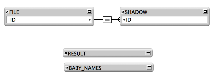 The SHADOW table has a one-to-one relationship between FILE and SHADOW. More on this shortly.