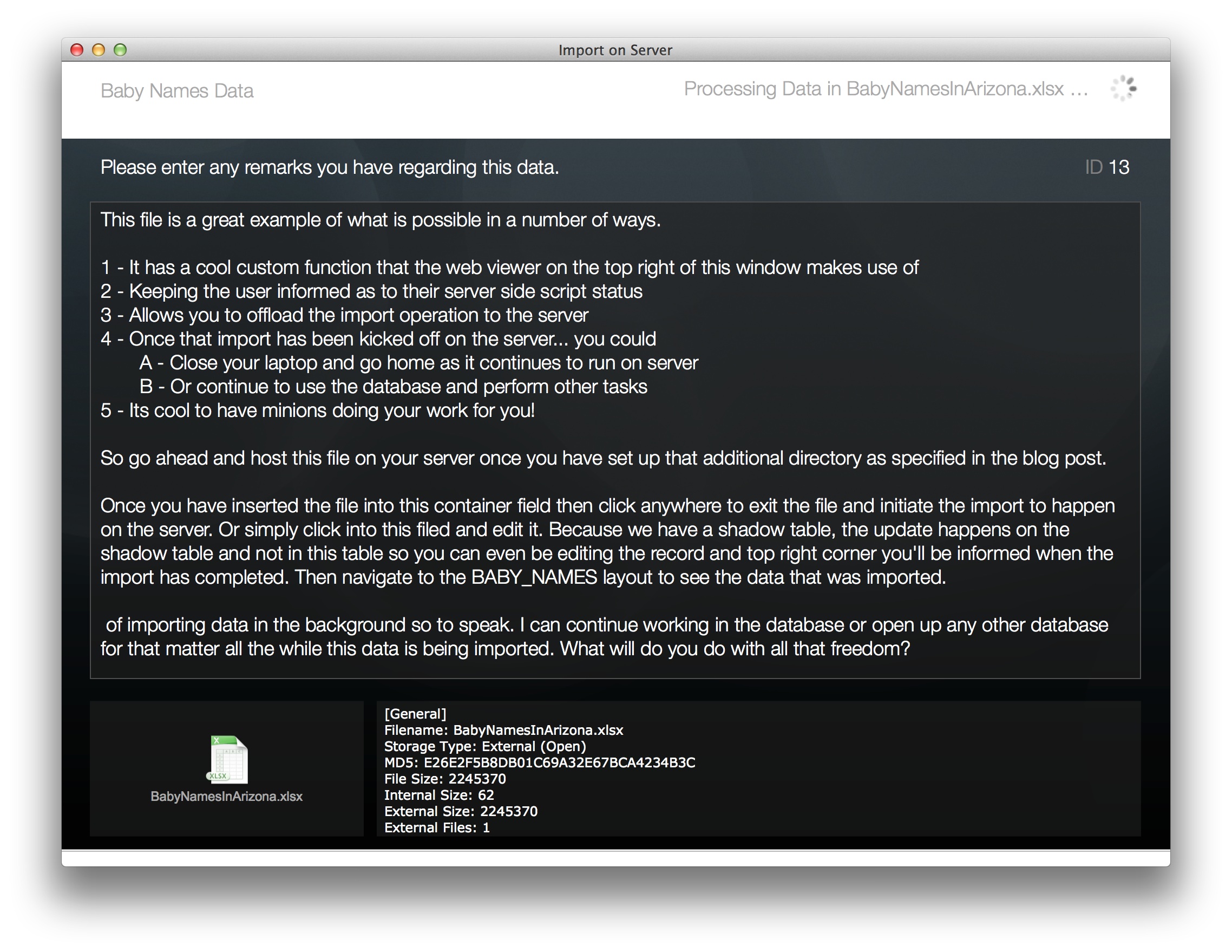 If you were to close your laptop and go home that import would continue to complete on FileMaker Server. Isn’t that cool?! I really think so.