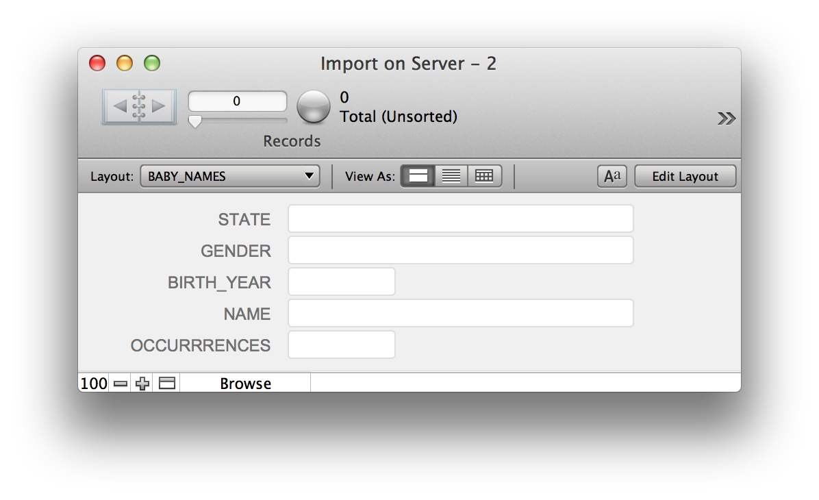 If you want to see the data as it starts to appear in the BABY_NAMES table, then open that layout in a new window.