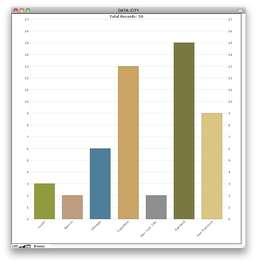 - Script. Sorts the found set by the active field, then gathers counts of the records in each sub-summarized group. By using the GetSummary function, we avoid needing sub-summarized parts on the layout. (Credit to Bob Bowers of Soliant Consulting for bringing this summary-gathering technique to my attention.)