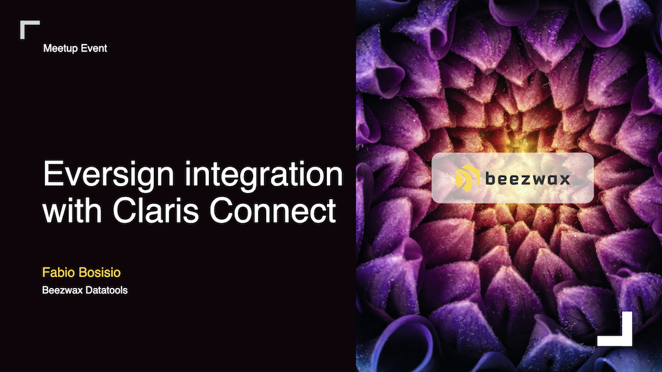 Let’s talk about Claris Connect as the way to orchestrate data-driven workflows involving Xodo Sign (formerly Eversign*) digital signatures, Claris FileMaker, Slack and a range of other possible platforms! Fabio Bosisio from Beezwax will walk through details for setting up these types of integrations.