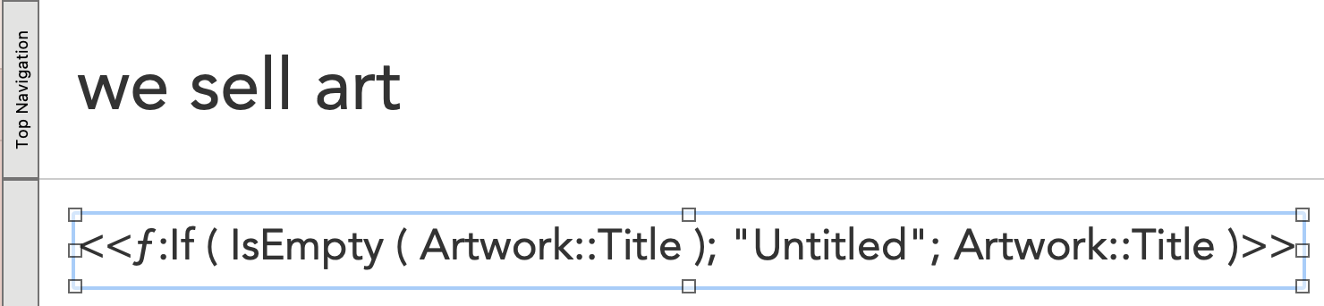 When an artwork in our gallery database doesn’t have a title entered, we want to display “Untitled” on the layout rather than show nothing. We can achieve this with a simple If statement: