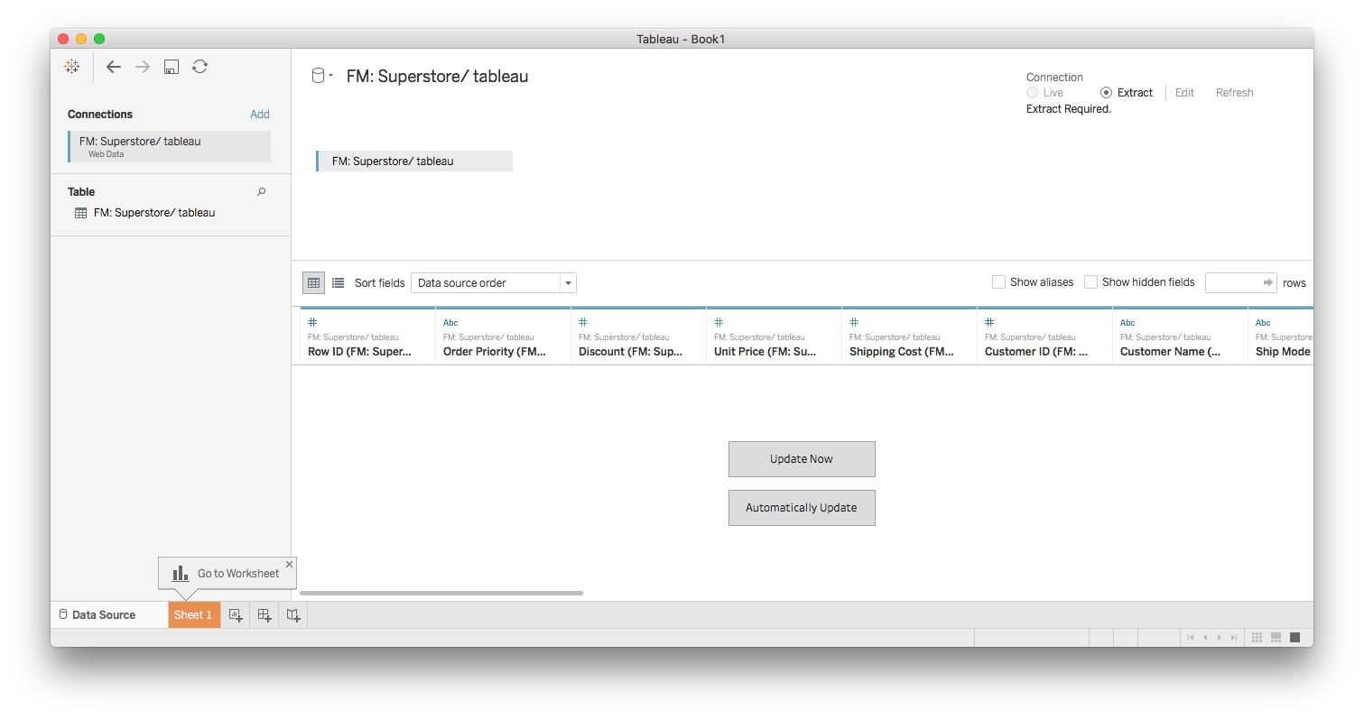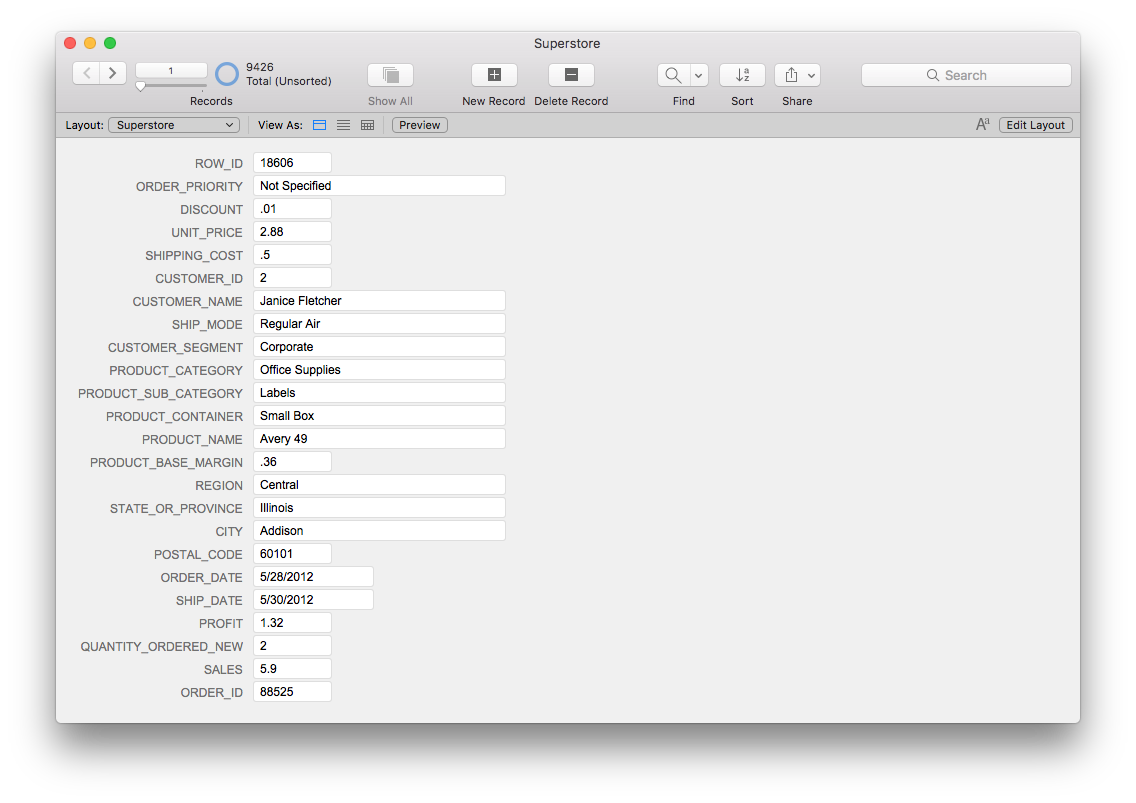 In this case, I have already imported the Superstore Excel file into a FileMaker database ready for you to use.