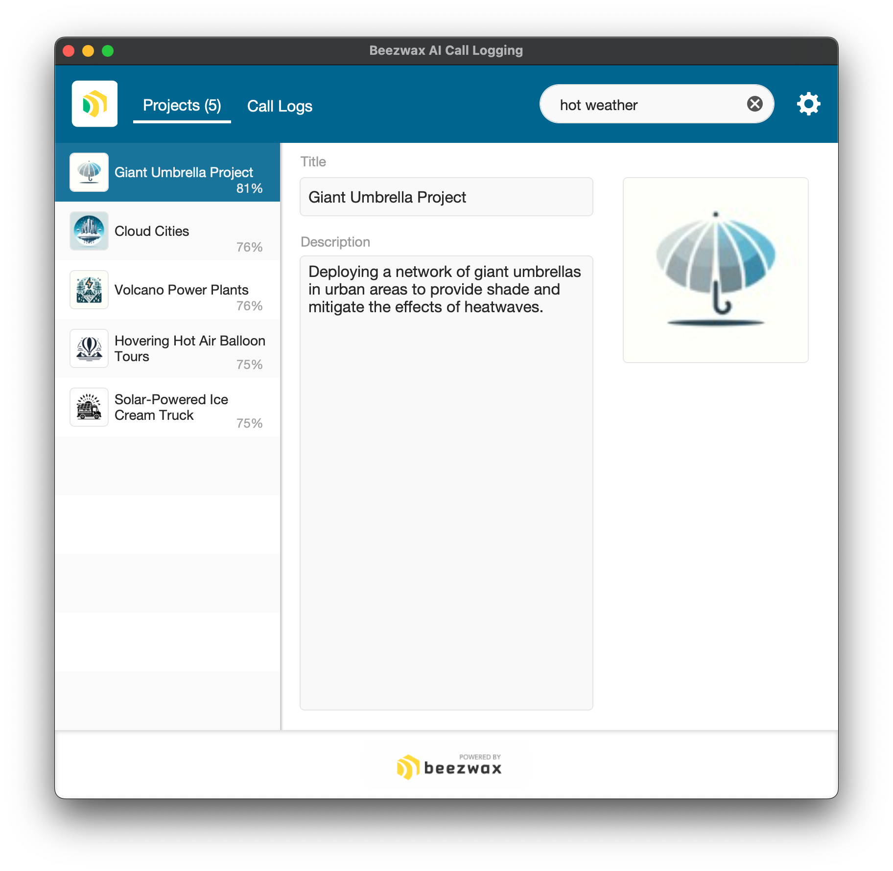 We can see that “hot weather“ is an 81% match with “Giant Umbrella Project“, but only a 75% match with “Solar-Powered Ice Cream Truck“. Exposing the cosine similarity can reinforce to the user that the most relevant result is at the top, and also distinguish between results depending on how much the similarity wanes as the user scrolls downward.