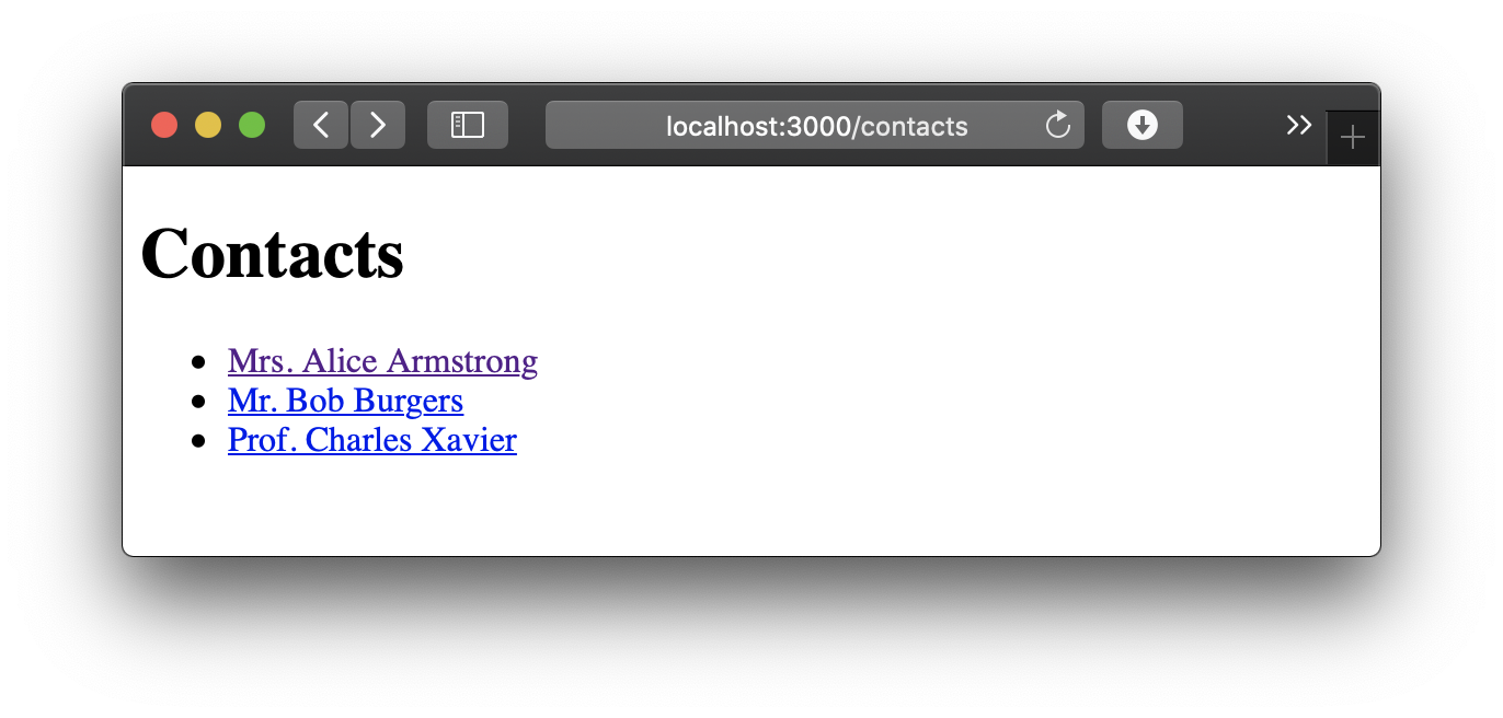 With that in place we can now fire up our Rails server and open /contacts in our browser, and voilà: