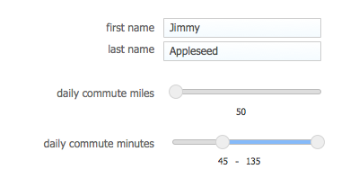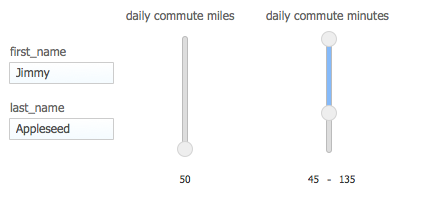 There’s certainly nothing wrong with this, especially given the FM 12 Design Surface’s new abilities to provide CSS styling and web-like object hover and focus styling. Still, let’s imagine that we want to provide range sliders on our layouts, just like users would see on the web. We want a simple slider for daily commute miles, and a dual/range slider for the daily commute fields.
