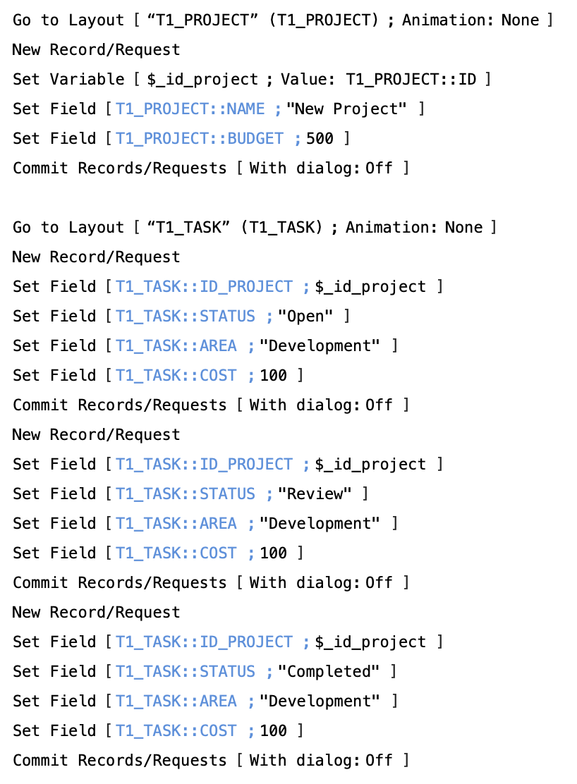 The next method was to use the FileMaker transactions that we have been using for years now by controlling and creating all the of the records from the perspective on a single uncommitted record.