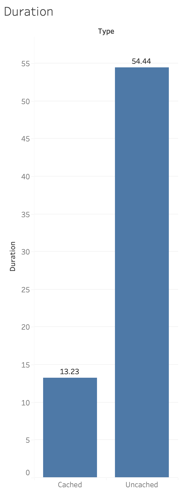 Not much of a difference in time to view the list of records when it is uncached. But there is a significant difference when using the cache.