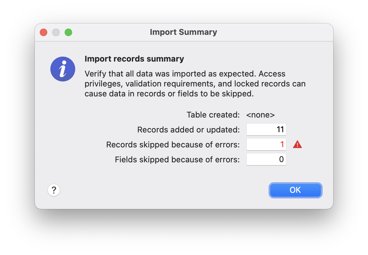 One more thing: When you use the Import script step within a transaction block it won’t show the Import Summary dialog, which normally shows up at the end of an import.