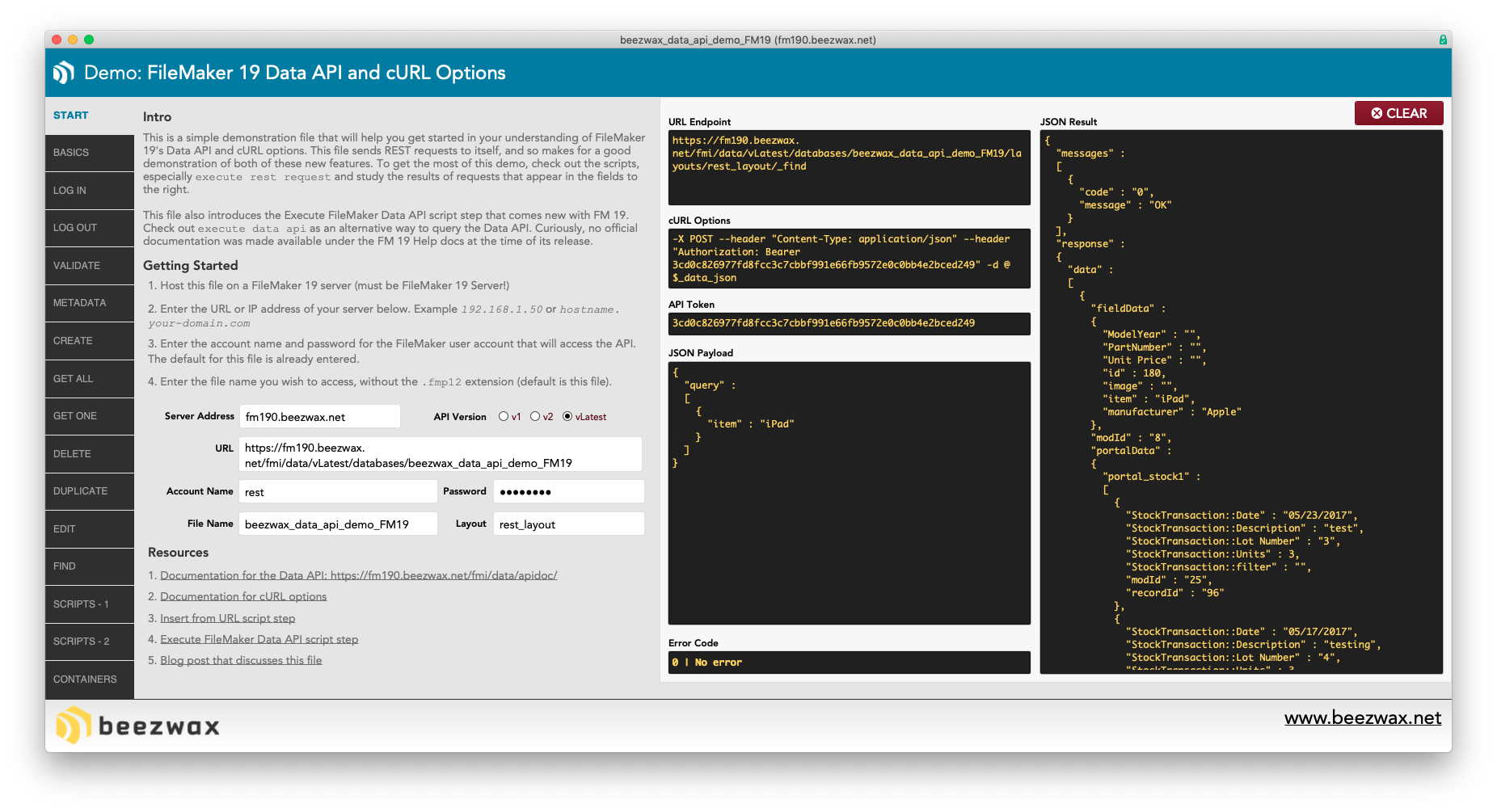 At the end of this article, you’ll find the demo file for learning more and trying out various REST and cURL functionality with FileMaker’s Data API. Enjoy!